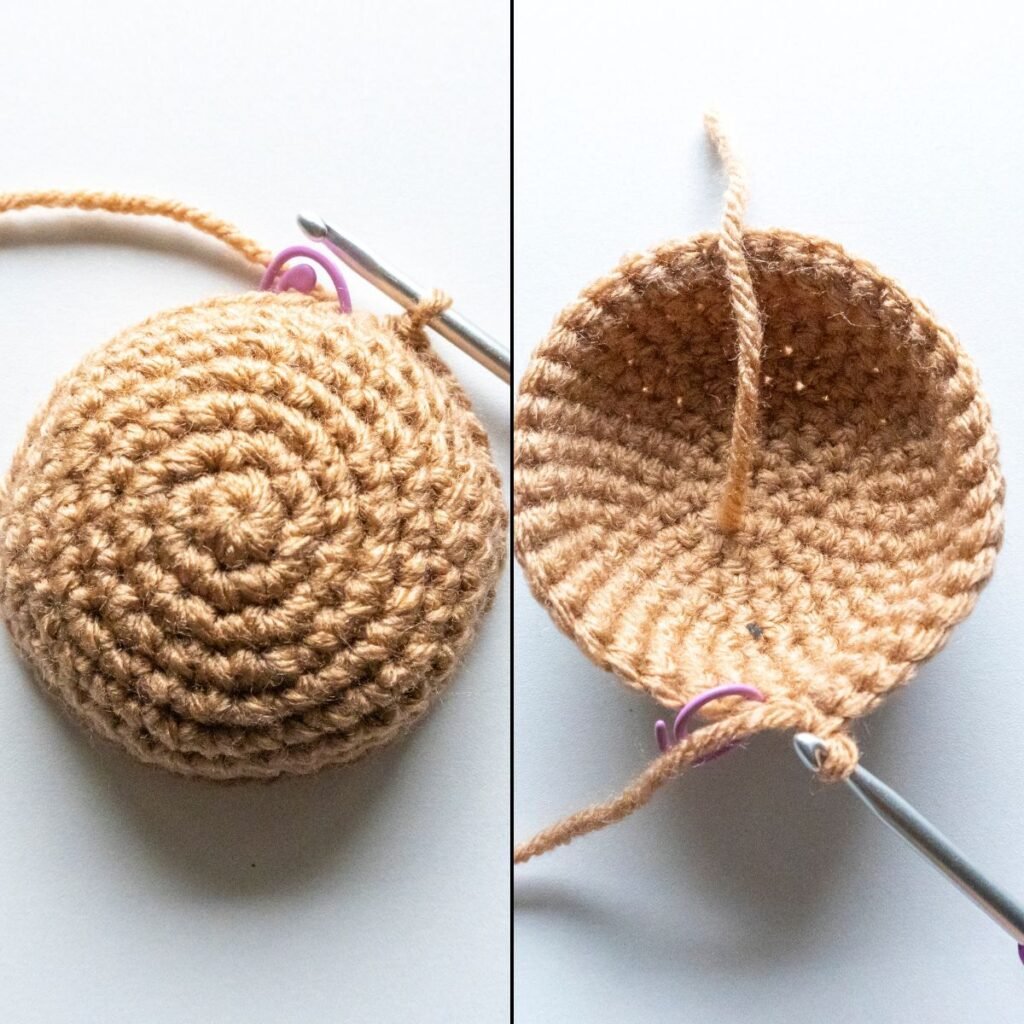 While crocheting on the wrong side doesn’t ruin the shape, it does create a hurdle later in the process: difficulty with decreasing.